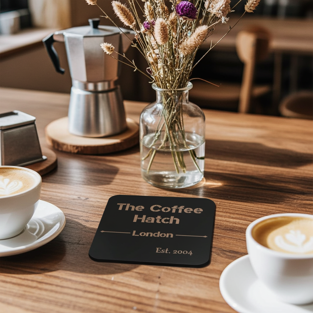 If you do not have a logo and just want to buy them now without a pre-sale mock-up which we do recommend, you can just enter the text and font to be engraved in the personalisation / text box. If you want different engravings on different coasters then state what you want on each. So example: Coasters 1-9: Ginny's 18th Birthday, 12th June 2026, (Stylish Font), Coasters 10-20 Bobs Accountancy established 2024, (Old English Font) etc.
