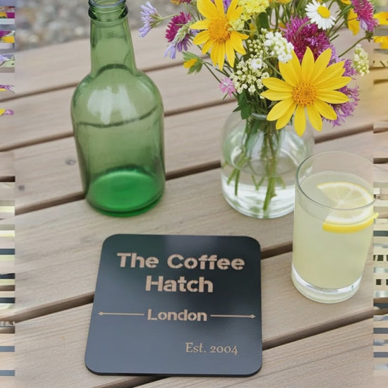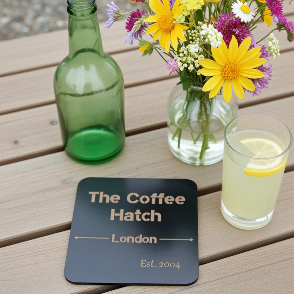 Therefore these bespoke coasters, are attractive, very highly personalised, (we are happy to work with you to get the design you want- this is included in the price), last significantly longer than card and paper matts) and come at a good price.