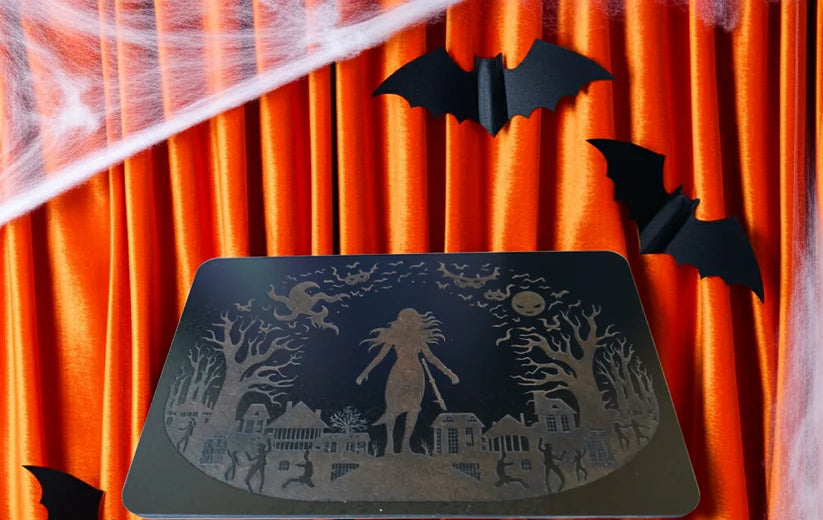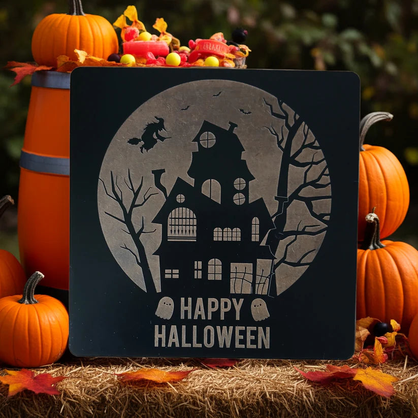 2 Spooky Halloween Scene Wall or Door Plaque. Again with our non-marking double sided tape and on our Black Topped Wood.