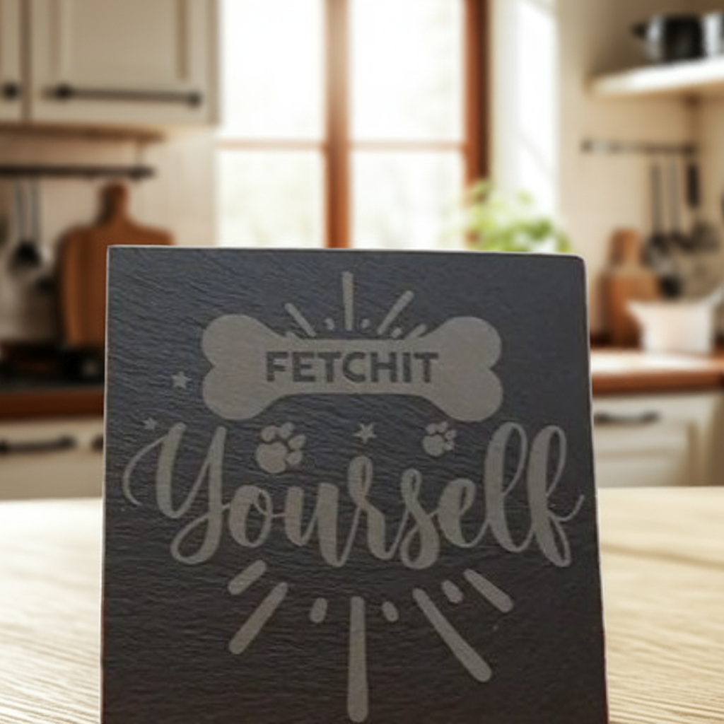 Crafted from premium UK-sourced slate and engraved with precise dog-themed designs, these six round or square coasters combines elegance with functionality. Each coaster features chunky edges and protective bumper feet, ensuring durability and surface safety. Each coaster, features a different design related to lovable dogs and what they mean to us. They are treated for water resistance, they are easy to clean with a damp cloth. Made to order in Thanet, Kent, these coasters offer a refined touch to your home while safeguarding your surfaces from drinks. Please note, they are not dishwasher safe.