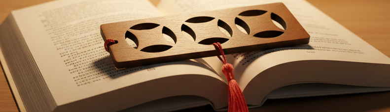 Exquisite Steamed Beech Bookmark with stylish cut-outs, 13.8cm in length, with tassel.