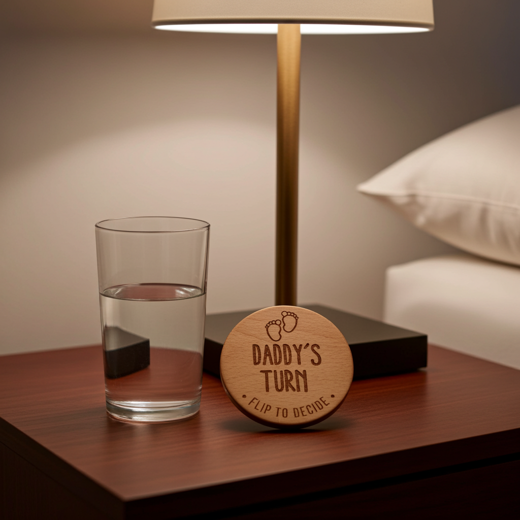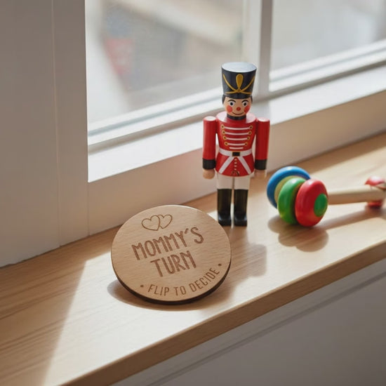 Parents Dilemma Decision Coin. 80mm diameter. Personalise with whose turn, e.g. Mommy, Mummy, Mum, Grandma, dad etc.