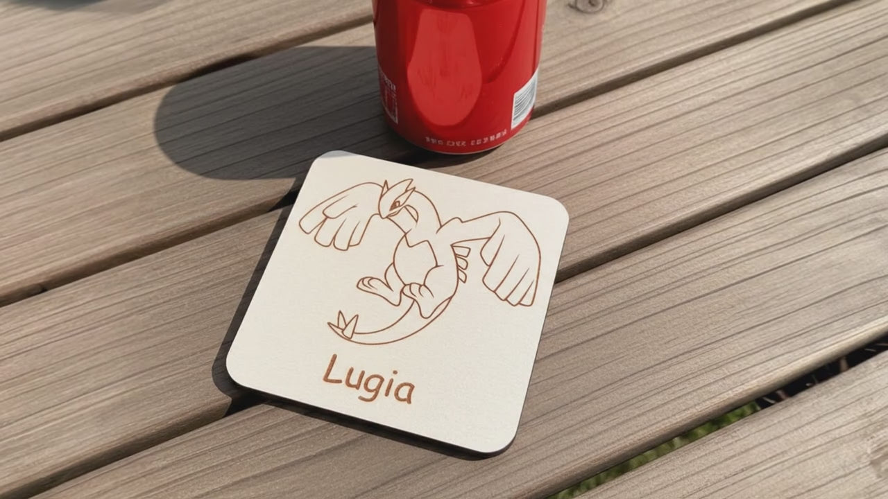 Add a touch of contemporary style to your bar or dining table with this set of 5 square wood drink coasters. These stylish coasters are Pokémon themed engraving and come in a striking white colour and engravings that are Golden Brown.