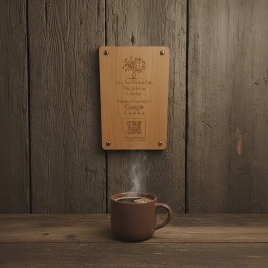 Elevate your customer feedback with our handcrafted QR Code Review Wall Board. Made from quality steamed beech wood and made to order, each board is personalised with your business logo and custom text in your choice of font.