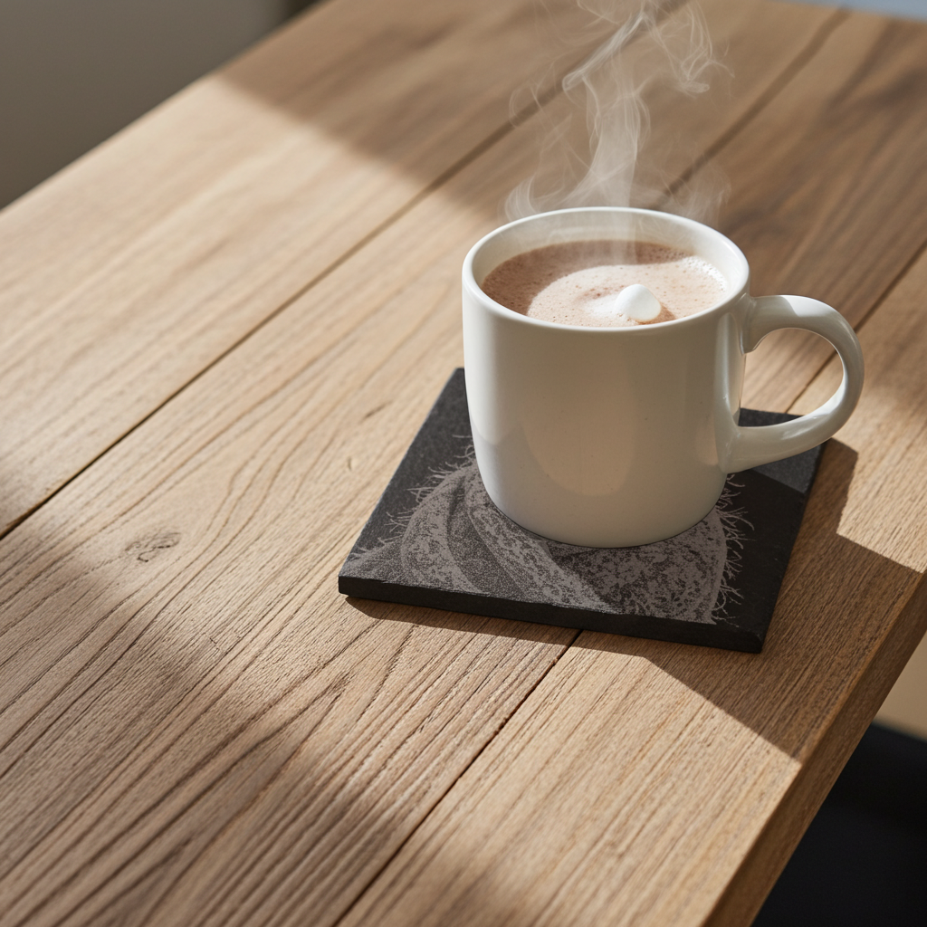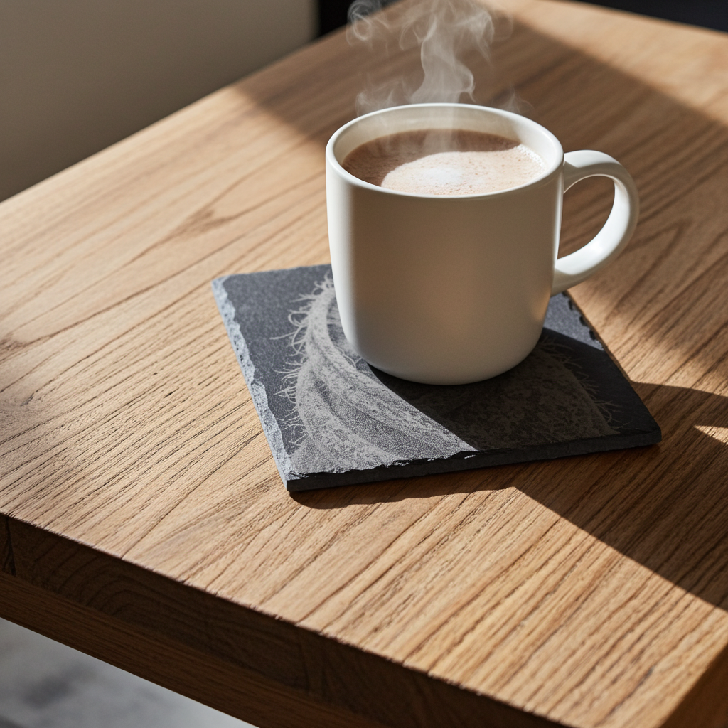 To clean wash with water and mild soap and allow to air dry. Not suitable for use in a dishwasher. The slates are treated, this makes them fluid resistant and brings out the engravings. They are heat resistant, good for both hot and cold drinks. They can be stacked and suit any home or garden. They are both functional and durable. As with all our coasters, we make these to order.