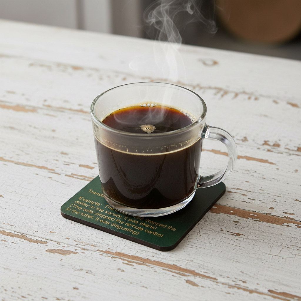Set of 6, Drink Coasters, County of Kent Unique Meanings and Slang, Black Topped Wood, with bumper feet.