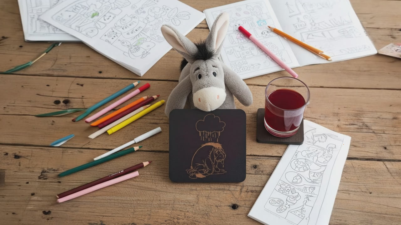 This set of 6 Winnie- the- Pooh Wood Drink Coasters is a stylish, durable, and functional addition to your home. Made from UK sourced wood and engraved with childhood memories, these square coasters are perfect for both hot and cold drinks. Protect your surfaces with the bumper feet and enjoy these exquisite coasters or they make a great gift.