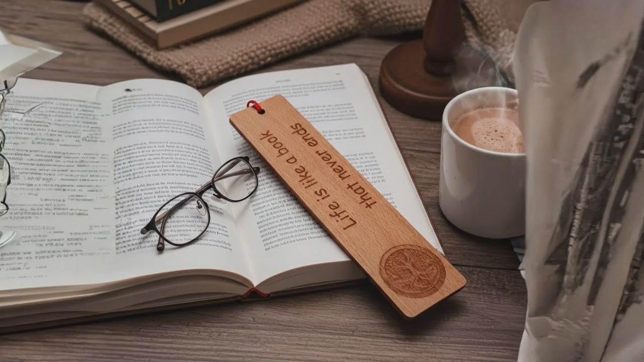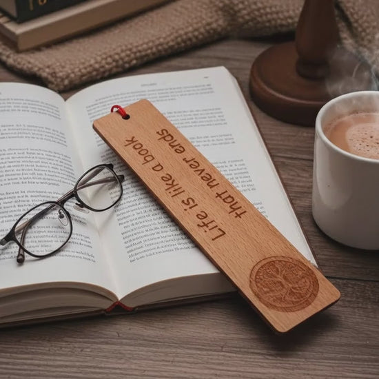 Steamed Beech Wood, Tree of Life Bookmark with Book quote and Tassel.