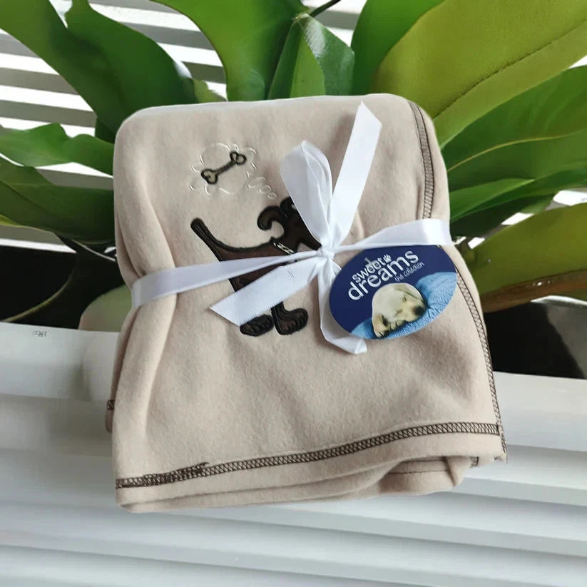 "Sweet Dreams" Cream Large Fleece Dog Blanket / Throw, (118cms x 118cms)