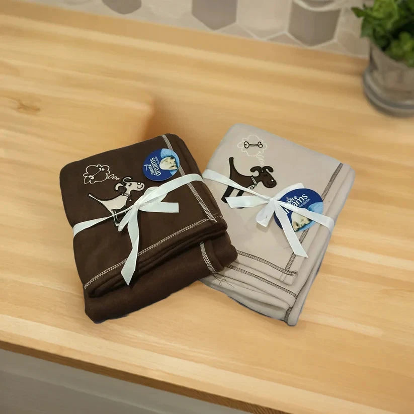 This generously sized fleece dog blanket offers the perfect blend of comfort and practicality. Measuring 118cm x 118cm, it's ideal for medium to larger breeds and works beautifully draped across sofas or laid on floors. The durable, hardwearing fabric withstands daily use whilst remaining effortlessly easy to maintain—simply machine wash for convenient care. Adorned with a charming embroidered cartoon dog design, it combines functionality with understated elegance. A versatile companion for dogs of all sizes seeking a cosy retreat.
